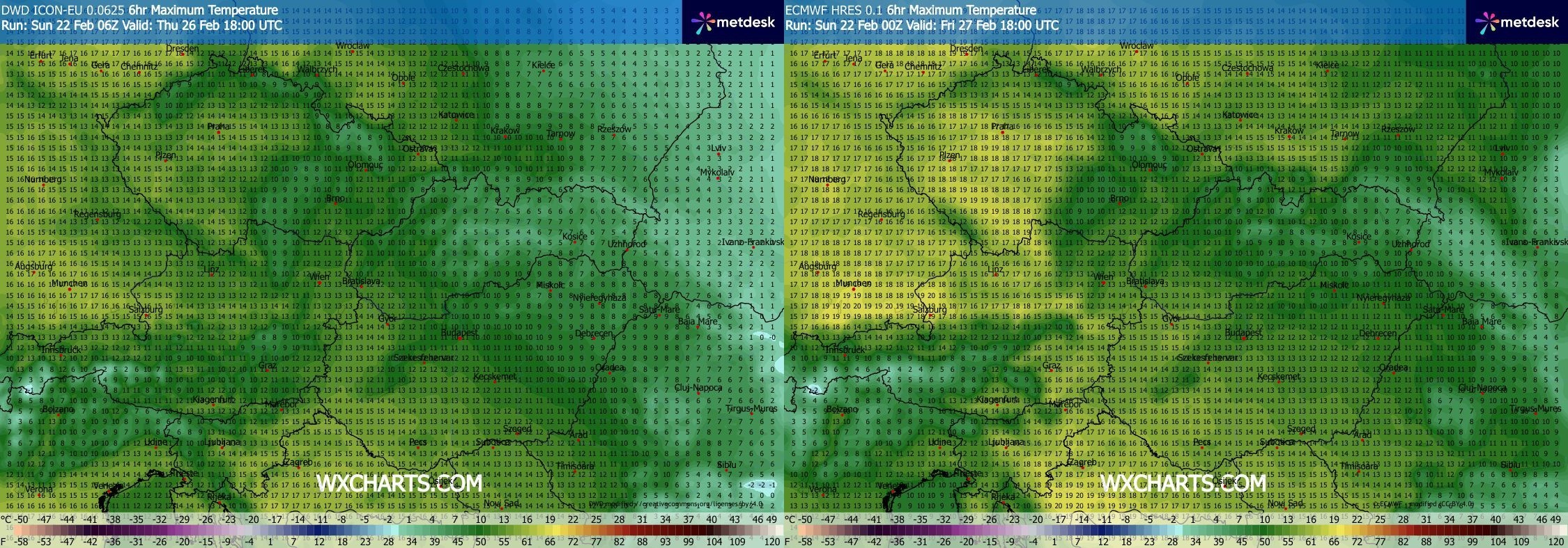Už minulou neděli (22. února) se víkend, který máme aktuálně za sebou, jevil jako skutečně jarní a velmi teplý. Modely (například ECMWF/ICON) slibovaly teploty zejména v Čechách nad 15 °C, mnohdy až k 18 nebo 19 °C. Morava se Slezskem měla zůstat o něco chladnější, což se i událo, přesto i zde teploty měly překračovat zdatně 10 °C.